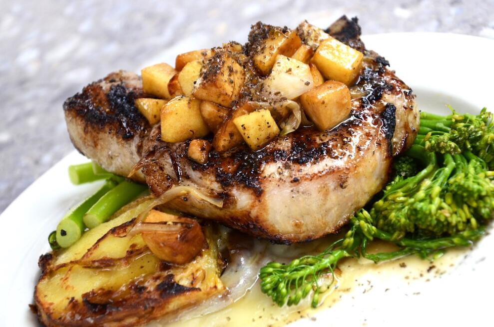 Fläsklägg med rotmos, stekt lök och pepparrotscréme 145:-